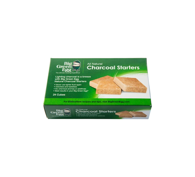Om de houtskool in de Big Green Egg aan te steken zijn slechts drie aanmaakblokjes nodig. Doosje à 24 starters.
