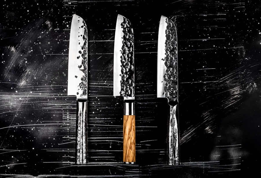 Een santoku schommelt niet op het snijoppervlak zoals het lemmet van een koksmes, dit komt door het platte lemmet. Je houdt een santoku vast bij het handvat en snijdt met een beweging van achter-boven naar beneden-voor. Bij elke snede verliest het lemmet dus contact met de snijplank.