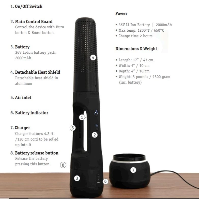 Looftlighter X is ontworpen voor de krachtige, ultieme verbranding van houtskool of hout zonder netsnoer.