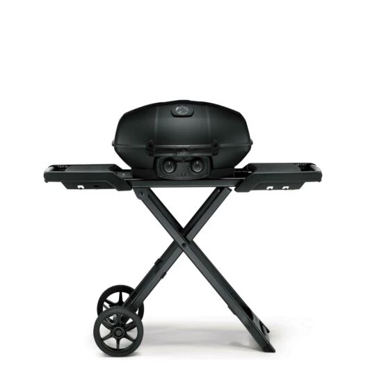 De stijlvolle Napoleon® Phantom TravelQ™ PRO285X gasgrill combineert functionaliteit met een modern mat zwart design. Met deze mobiele barbecue met een inklapbare wagen, kan er overal groot gegrild worden. Op deze krachtige en compacte barbecue met hoog deksel kunnen tot wel 20 hamburgers tegelijk bereid worden. Het innovatieve design beschermt de branders tegen wind en creëert zo niet alleen de ideale barbecue omgeving voor direct en indirect grillen, maar ook voor het roken met de Napoleon® smokerpipe. De barbecue beschikt over twee individuele RVS-buisbranders met JETFIRE™ ontsteking. De geïntegreerde ACCU PROBE™ deksel thermometer leest u eenvoudig de temperatuur af voor de ideale barbecue omstandigheden. De geëmailleerde gietijzeren WAVE™ roosters geleiden de warmte gelijkmatig en laten de kenmerkende Napoleon® WAVE™ grillstrepen achter op uw gerecht. De PRO285X is uitgerust met een aansluiting voor grote gasflessen en een houder voor 5kg. Daardoor is deze barbecue ook perfect te gebruikten in compacte tuinen of op balkons. Met zijn praktische zijtafels met bestek en handdoek haken, biedt het solide onderstel plaats voor voorbereidingen en accessoires. Met de grote wielen laat de PRO285X zich ingeklapt praktische transporteren of ophangen aan de wand om plaats te besparen.