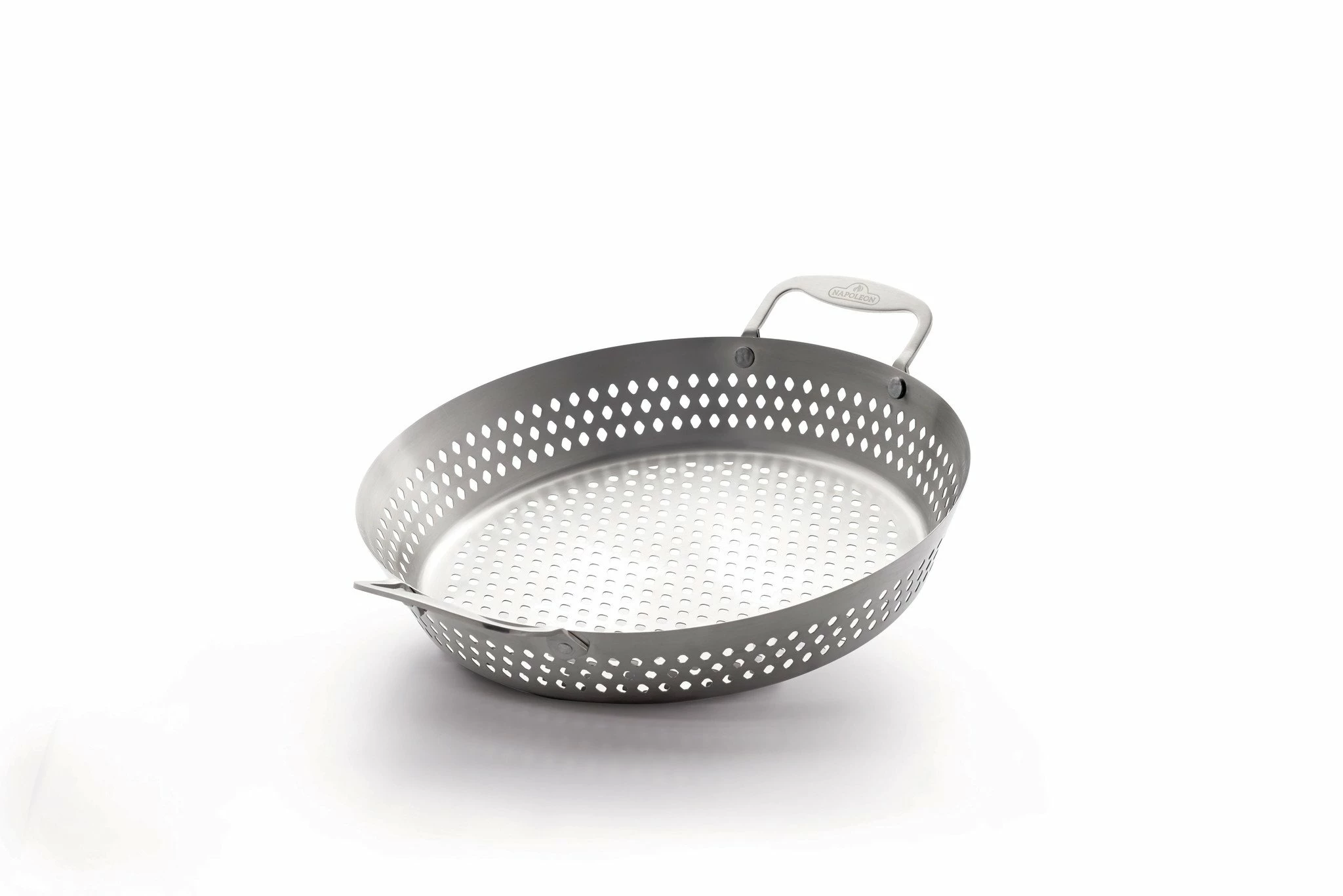 De korf heeft hoge, iets gebogen randen die voorkomen dat je groenten tijdens het grillen op het rooster van je barbecue terechtkomen.