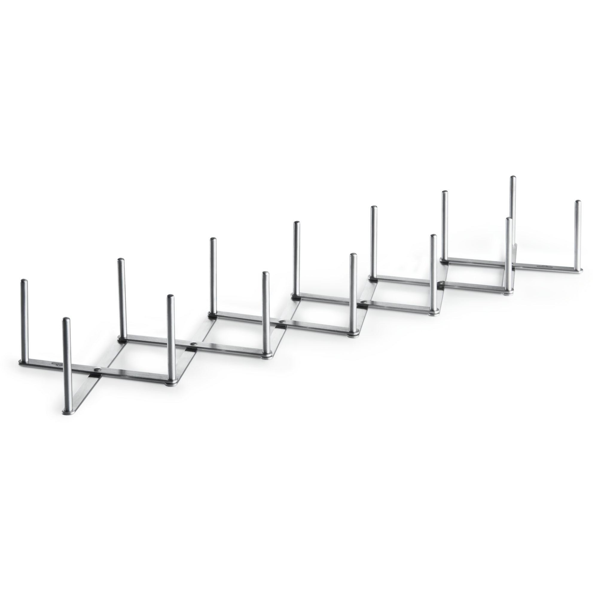 Het ontwerp is perfect voor één tot zes ribben. Breid dit rek uit om zo veel of zo weinig ruimte op uw barbecue in te nemen als nodig is, het past op alle modellen van wagenbarbecues en kogelbarbecues.