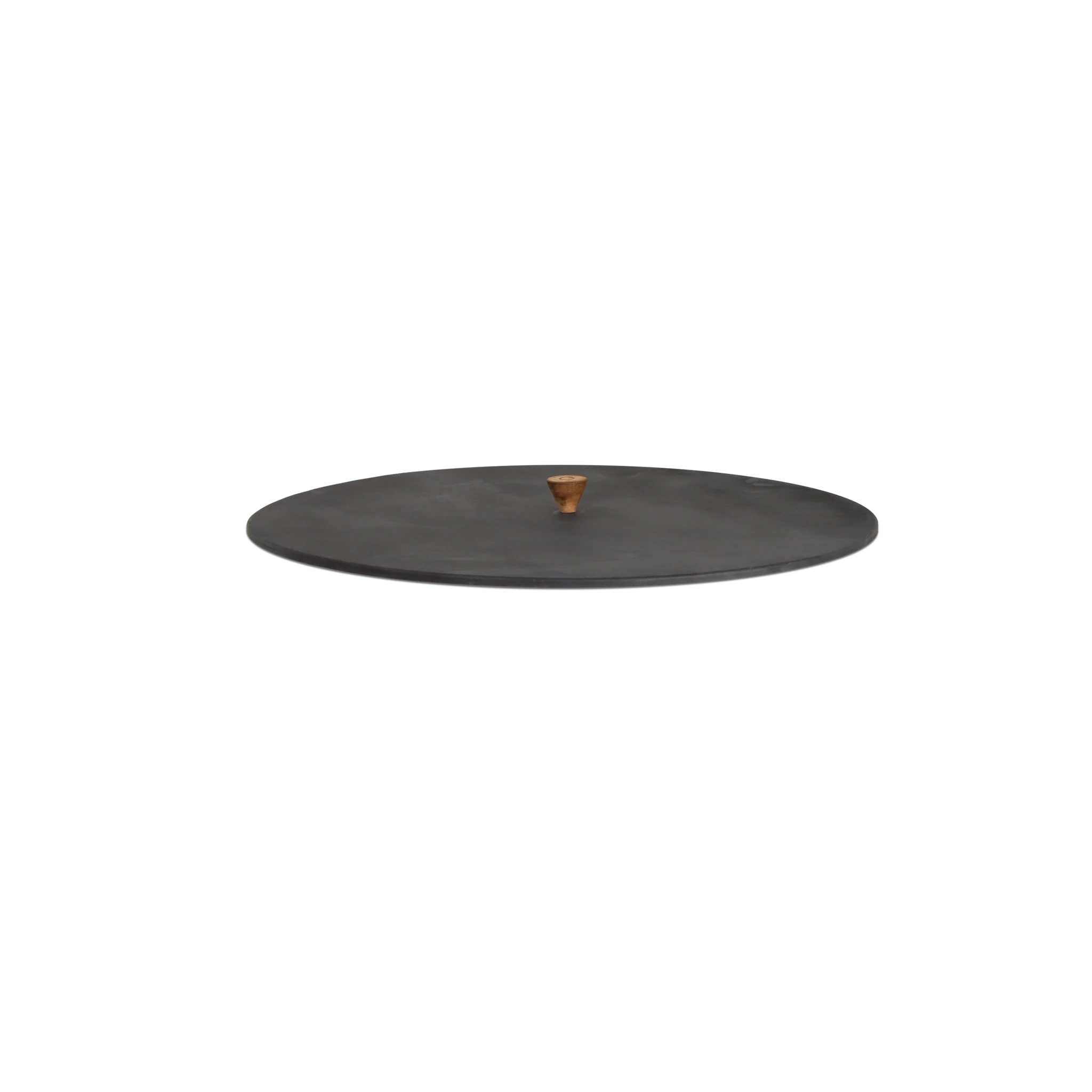 Gemaakt van zwart gecoat staal en voorzien van een mahoniehouten knop. De OFYR Cover 85 (Ø85 cm) en Cover 100 (Ø100 cm) passen over de vuurschaal en plaat om uw OFYR af te dekken wanneer deze niet in gebruik is.