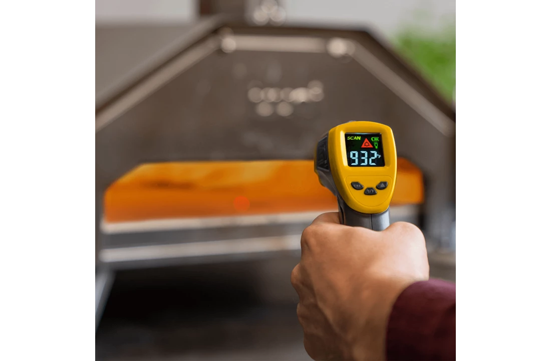 Met de Ooni infraroodthermometer met laseraanwijzer kun je de oppervlaktetemperatuur van uw Ooni pizza-oven en pizzasteen direct en nauwkeurig meten. Zodat je exact weet wanneer de pizzasteen klaar is om de perfecte bodem te bereiden. Richt de laser op het midden van de pizzasteen en streef naar ongeveer 400°C (752°F) voor de perfecte pizza, die in 60 seconden wordt bereid.