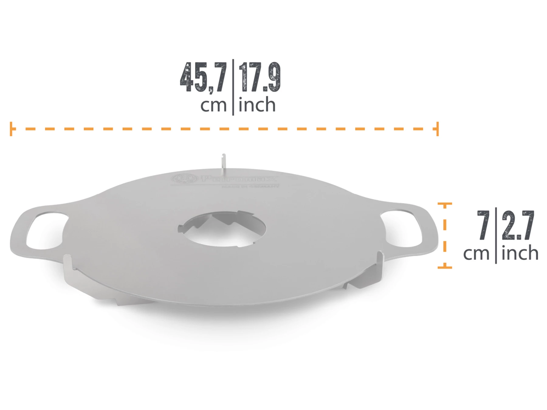 De Atago Grillplaat is het verlengstuk voor de allrounder, de Petromax Atago. Met de plaat gemaakt van 3 mm dik geolied staal, kunnen hartige vleesspecialiteiten dankzij verschillende temperatuurzones en gelijkmatige warmteverdeling uiterst nauwkeurig worden gegrild. Tegelijkertijd kunnen visfilets of hartige gegrilde groenten aan de buitenrand worden bereid in een temperatuurzone met een lagere temperatuur. Na elk gebruik van de grillplaat zal de patina verbeteren. Door het natuurlijke anti-aanbakeffect van deze patina, hoeft weinig vet worden toegevoegd tijdens gebruik.