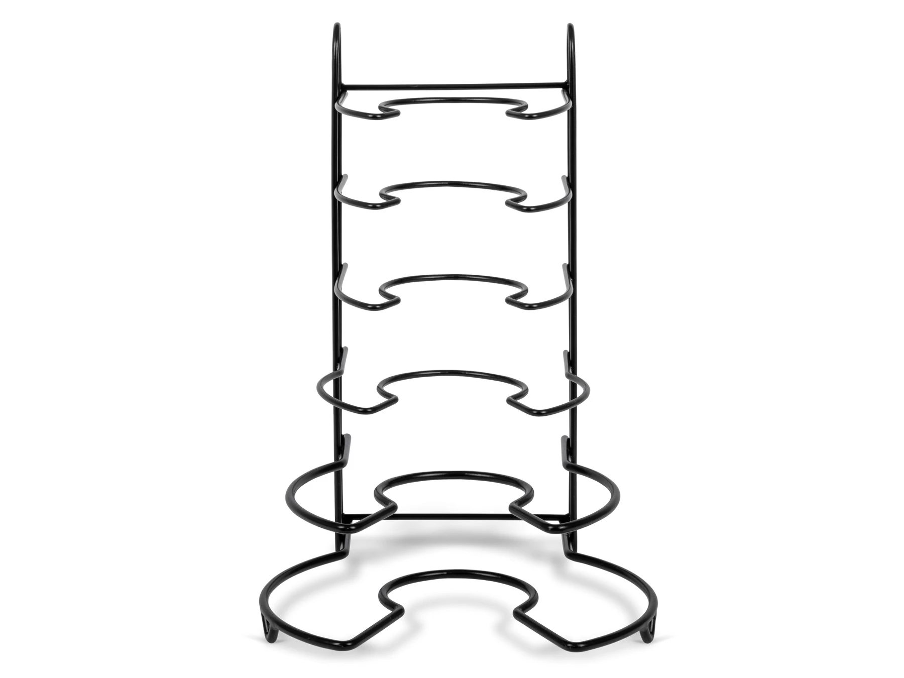 Het Petromax Pannenrek is het ruimtebesparende opbergrek voor uw Petromax pannen. In de gebogen stalen beugels kunnen maar liefst 6 skillets en smeedijzeren pannen worden opgeborgen. Het Pannenrek kan zowel verticaal als horizontaal gebruikt worden, zodat je pannen binnen handbereik hebt. Het Pannenrek houdt de pannen krasvrij en laat ze na het schoonmaken goed drogen.