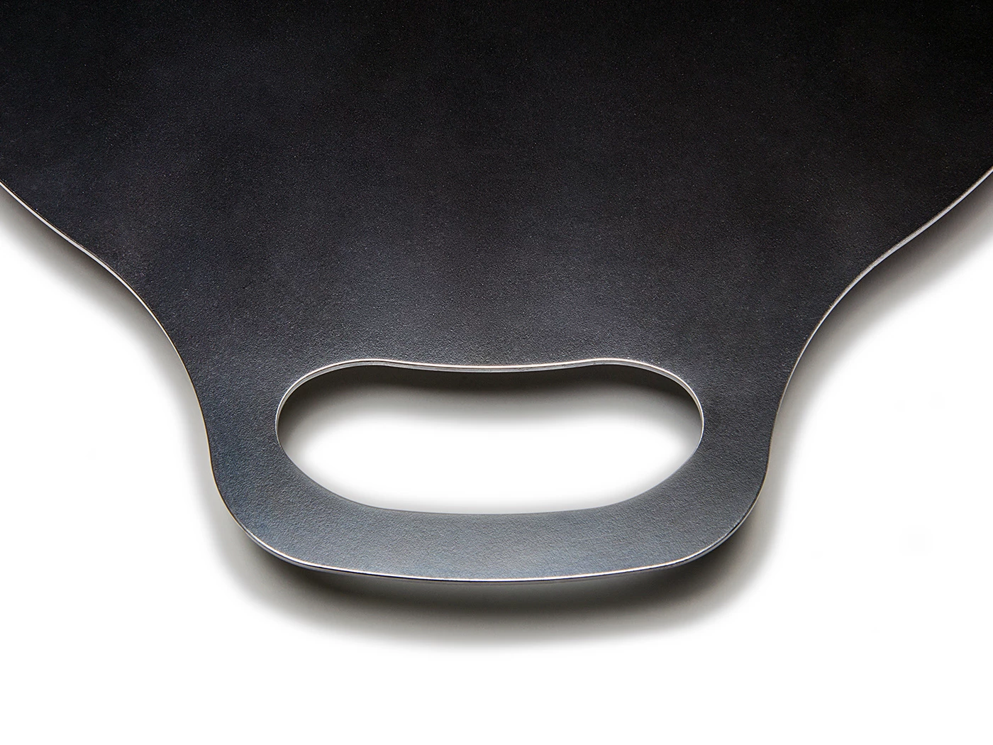 De unieke eigenschappen van het staal creëren meer hitte in het centrale deel van de plaat, dus minder heet aan de randen. Hierdoor kun je in het midden baken en daarna de producten naar de zijkanten schuiven om zo langzamer te garen of warm te houden.