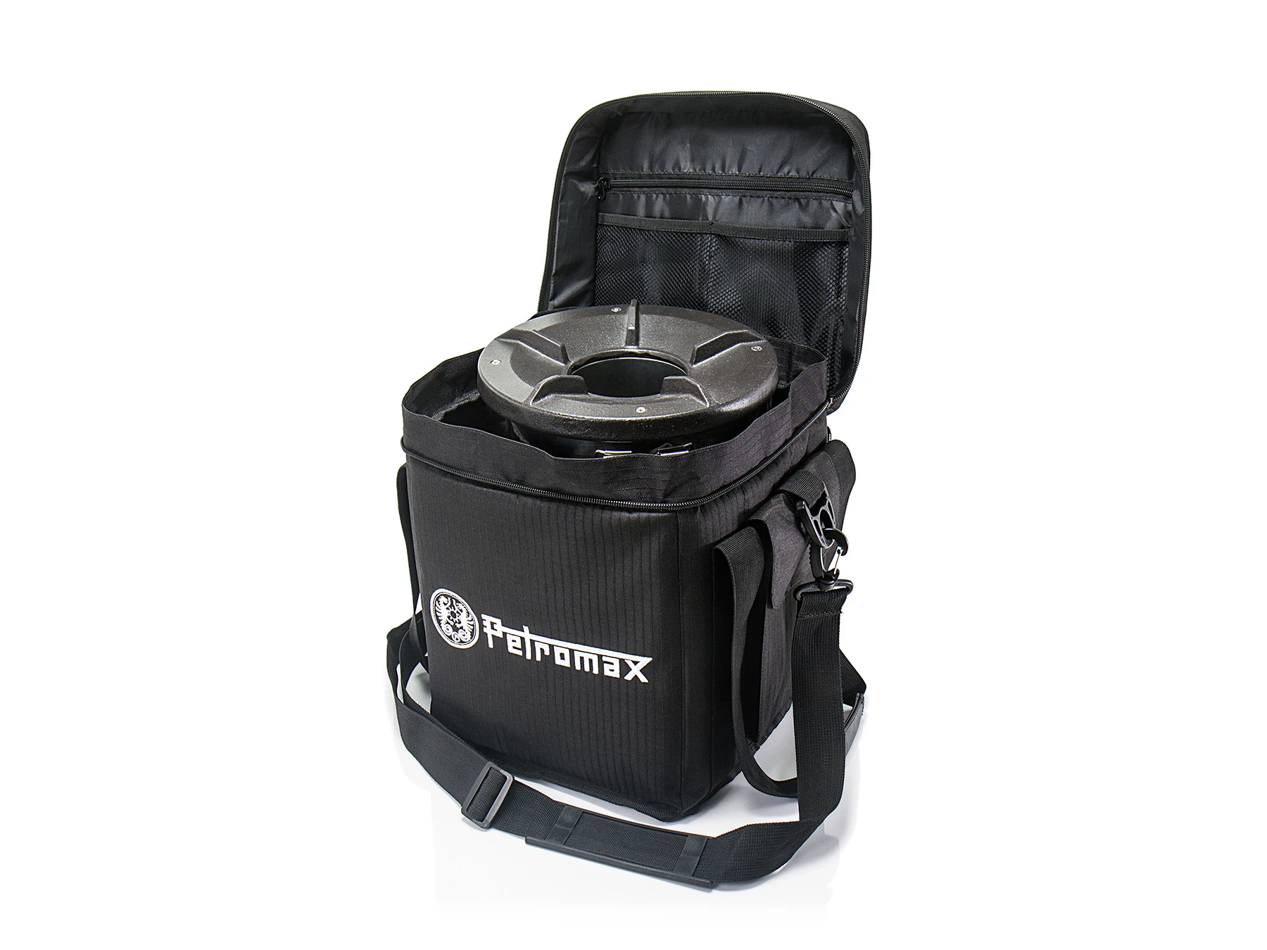 De transporttas is gemaakt van gewatteerd ripstop materiaal wat zorgt voor nog meer ondersteuning van het product. Daarnaast zijn er twee handvatten en een afneembare riem die gewatteerd en versterkt zijn voor meer draagcomfort. In de transporttas voor Rocket Stove rf33 van Petromax vind je mesh- zakken in het Deksel en zakken met klittenband.