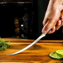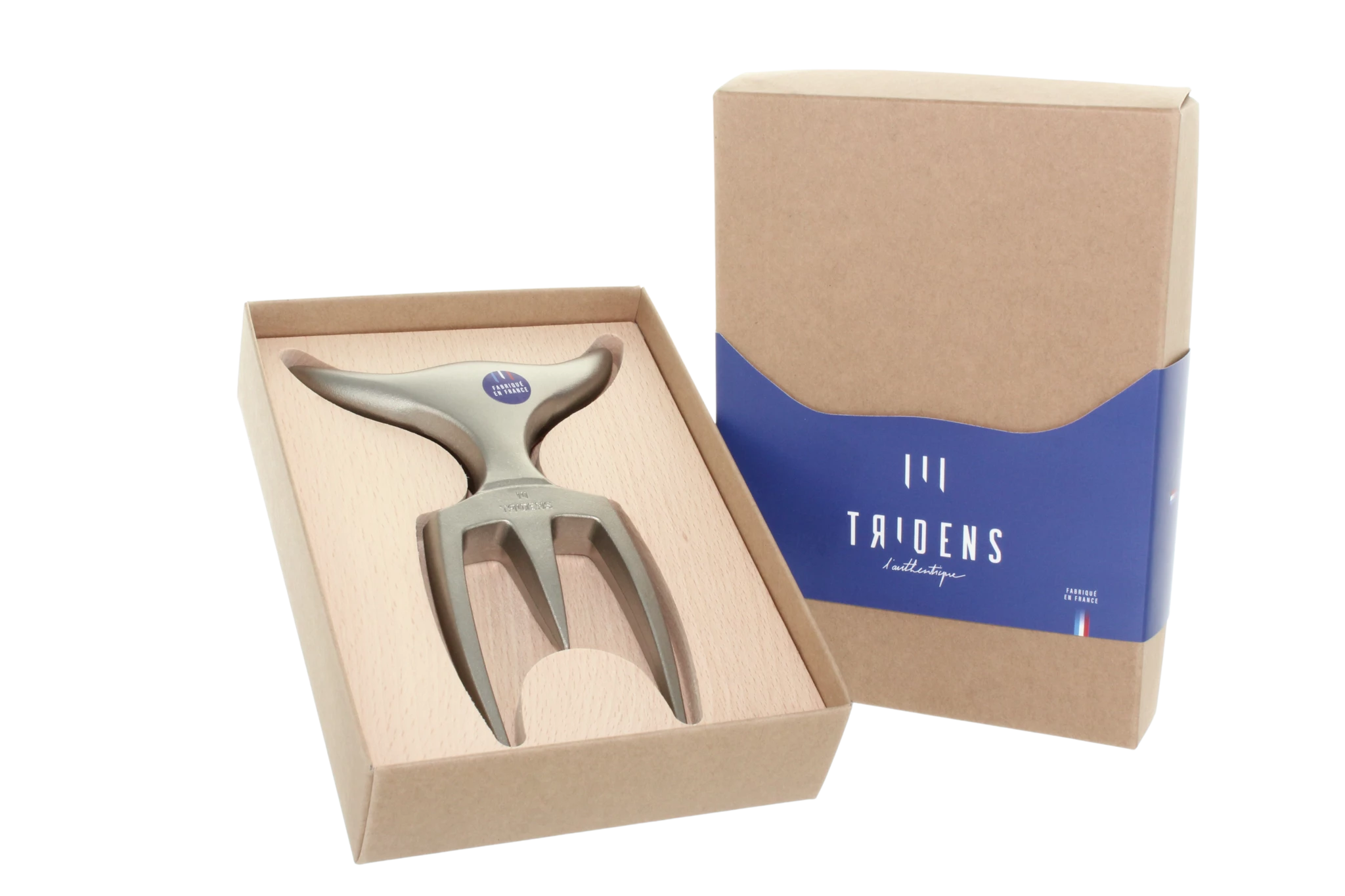 De Tridens Vork is speciaal ontworpen, de kleinste van de drie tanden, in het midden, maakt het mogelijk om de ribben te overlappen en zo het snijden vergemakkelijken. Met een gewicht van maar liefst 550 gram verrast deze vork eenieder. Het design en gebruik van de Tridens Vork is geschikt voor zowel rechts -en linkshandigen.