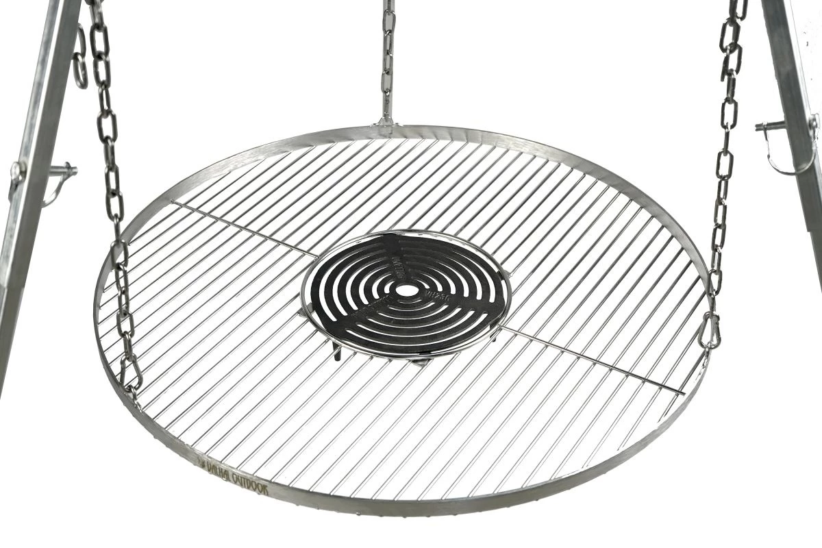Er worden in totaal 4 kettingen bijgeleverd. Zo kan je met drie kettingen een rooster aan de tripod ophangen en met de vierde ketting ook nog een Dutch Oven of percolator in het midden hangen voor gelijktijdige bereiding.
