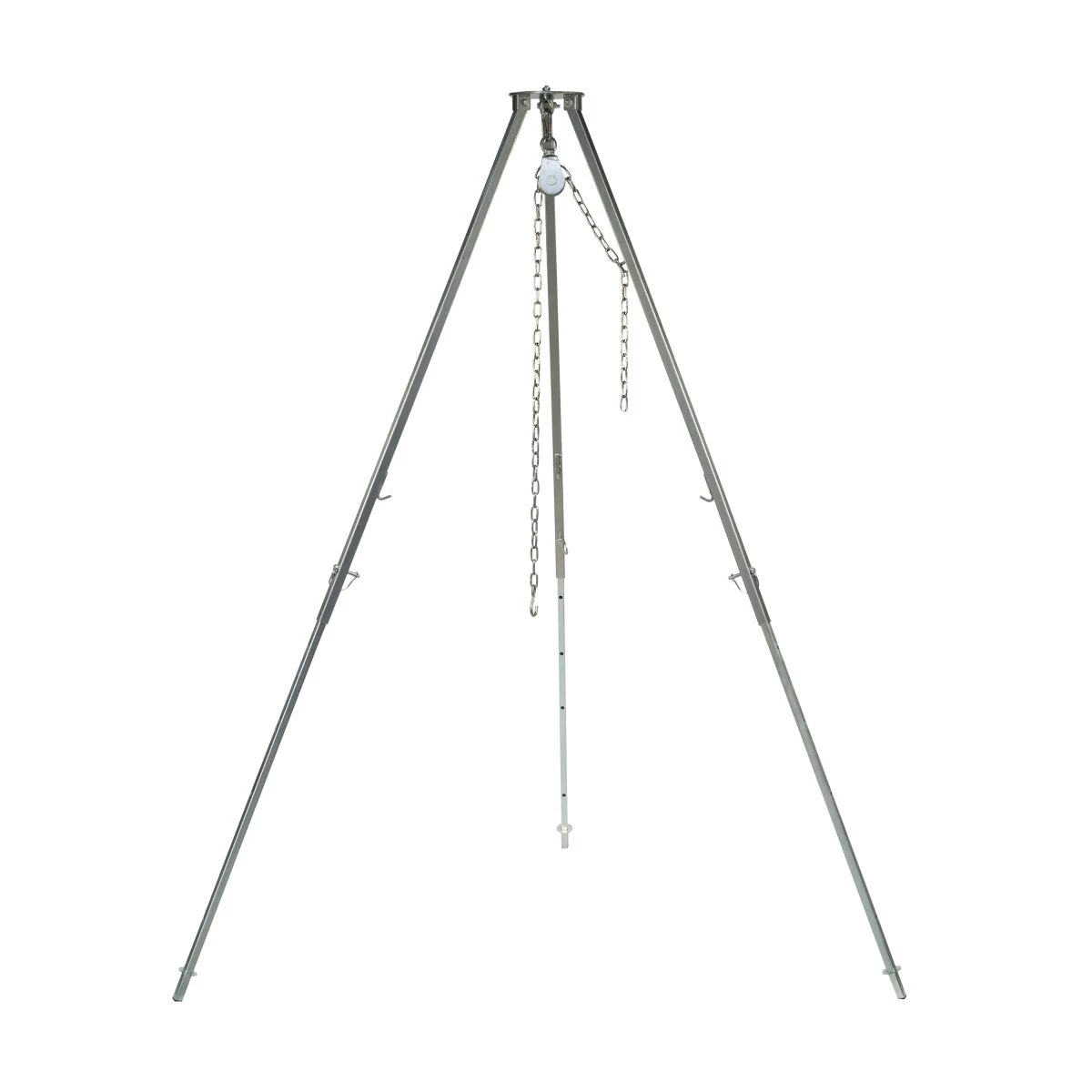 De driepoot van Valhal Outdoor is gemaakt van staal en heeft een hittebestendige coating. De drie telescopische poten zijn gemakkelijk in hoogte te verstellen en de maximale hoogte is 180cm. Dit is vooral ideaal, wanneer je de tripod op een ongelijke ondergrond wilt plaatsen. Door de hoogte van de poten aan te passen, kan je ervoor zorgen dat hij altijd recht staat. Het is ook gemakkelijk voor het opbergen, de tripod neemt met de poten helemaal ingeschoven vrij weinig ruimte in beslag.